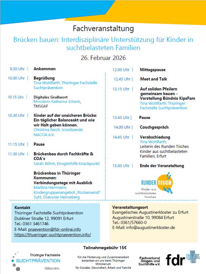Der Runde Tisch Kinder aus suchtbelasteten Familien lädt Sie herzlich zur Fachveranstaltung ein: